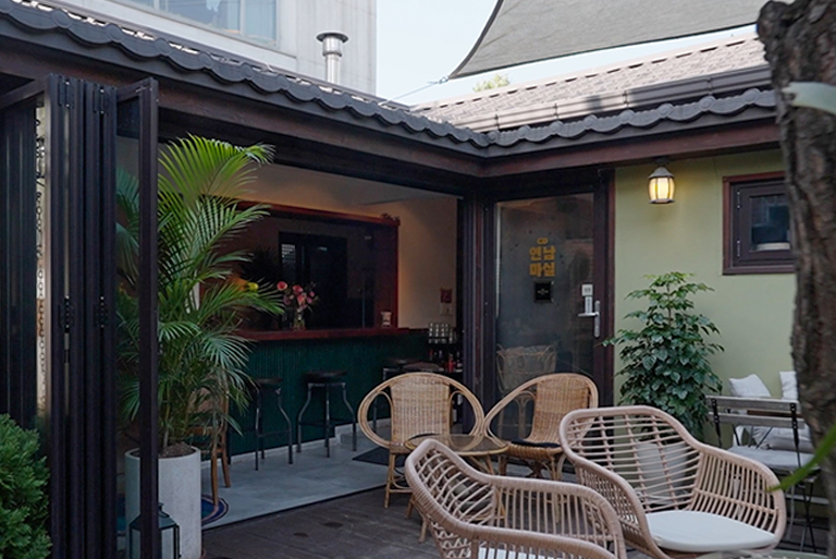 통주물 난로가 있어 더 아늑하고 운치있게 연남마실의 공간을 경험할 수 있으며 소나무가 서 있는 마당에서 사계절을 경험하세요.